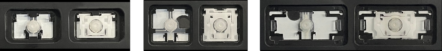 - I de flesta tangentbord som ser identiska ut på utsidan användes olika typer av fästen under tangenterna.