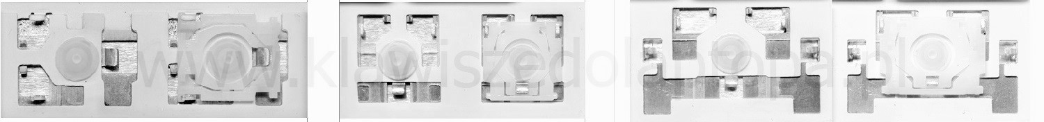 *I vissa tangentbordsmodeller används fler typer av fästen än de tre som visas på bilderna; vissa tangenter kan också ha metallgångjärn.